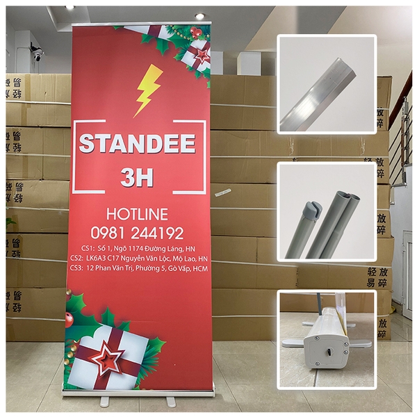 Hình ảnh của Standee cuốn phải được in bằng chất liệu PP, không được in bằng bạt hiflex.