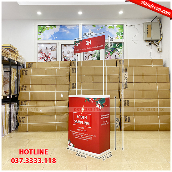 -Chi phí thấp. So với việc đóng 1 quầy bằng gỗ hay sắt tốt cả chục triệu đồng thì Booth Sampling có chi phí chỉ bằng 1/10