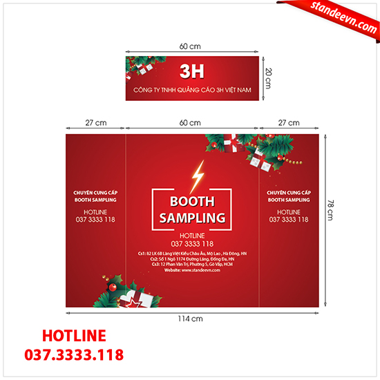 -Đặc tính: Booth Sampling là thiết bị chuyên dụng để làm nhận diện hình ảnh thương hiệu.Rất cơ động, có thể gấp xếp gọn gàng về kích thước 90x70x8cm thuận lợi cho việc di chuyển.