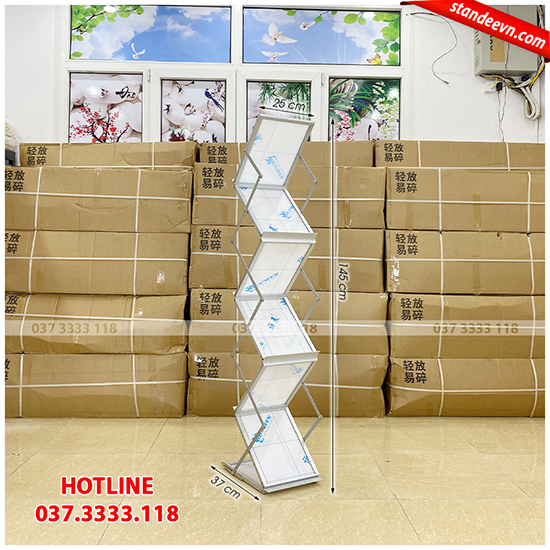- Bước 4: Cuối cùng bạn hãy dựng đứng giá, và đặt nó vào vị trí mong muốn. Sau đó bạn hãy đặt những tài liệu cần trưng bày lên 6 khay để.