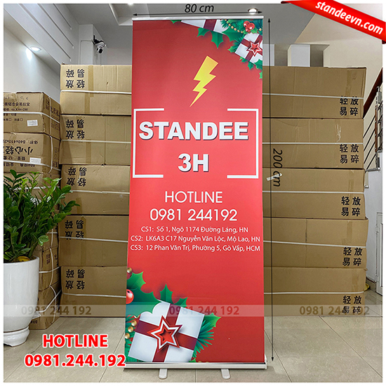 Chúng ta có một chiếc standee cuốn dựng hình ảnh theo phương thẳng đứng.