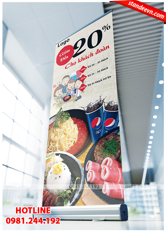Các mẫu standee cửa hàng ăn uống có kích thước lớn hơn sẽ rất phù hợp khi bạn có chương trình khuyến mãi. Nhờ thông điệp rõ ràng cùng hình ảnh bắt mắt, tin rằng đối tượng mục tiêu sẽ sớm chú ý tới sự kiện của quý vị đấy.